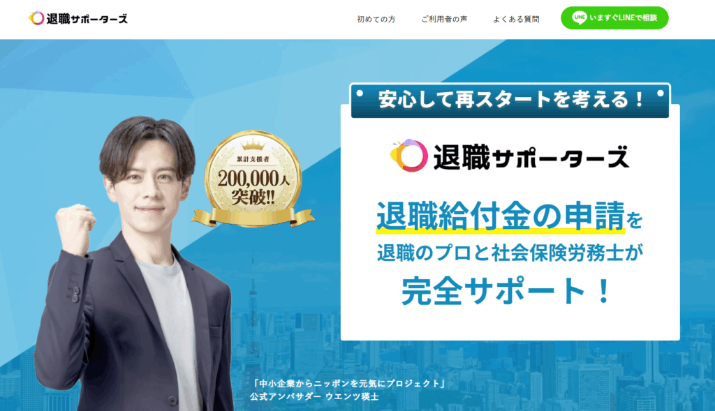 退職サポーターズは累積支援者数20万人を突破した、国内最大規模の『失業保険 申請サポートサービス』です。
